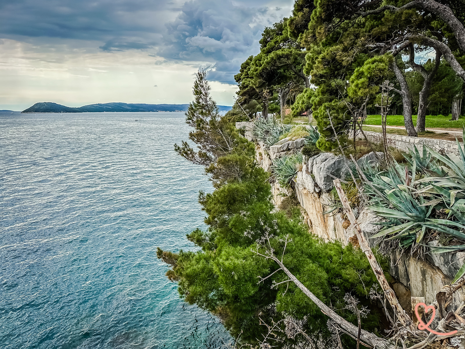 Ježinac Beach är väl värt ett besök. Den här steniga stranden, som delvis är anlagd i betong, har kristallklart, rent vatten som är perfekt för bad. Vi rekommenderar dock att du tar med dig badskor för ökad komfort. Vi njöt verkligen av den fridfulla atmosfären, vaggad av vågornas brus och barnens skratt. Med sina skuggiga platser under pinjeträden, den trevliga strandpromenaden och den fantastiska utsikten över öarna utanför kusten är det en av de vackraste stränderna i Split!